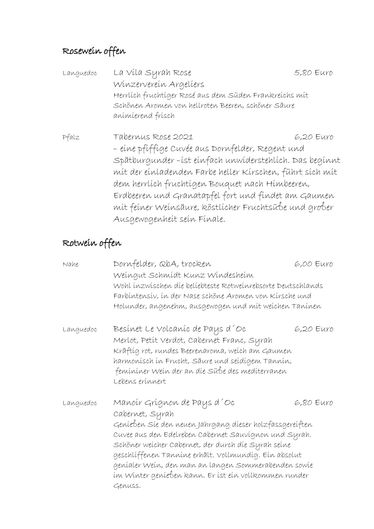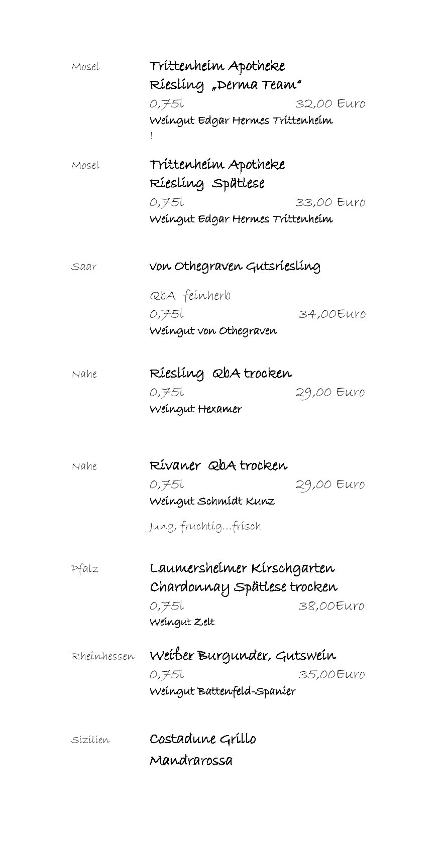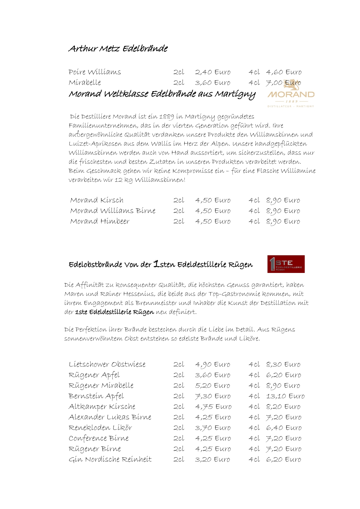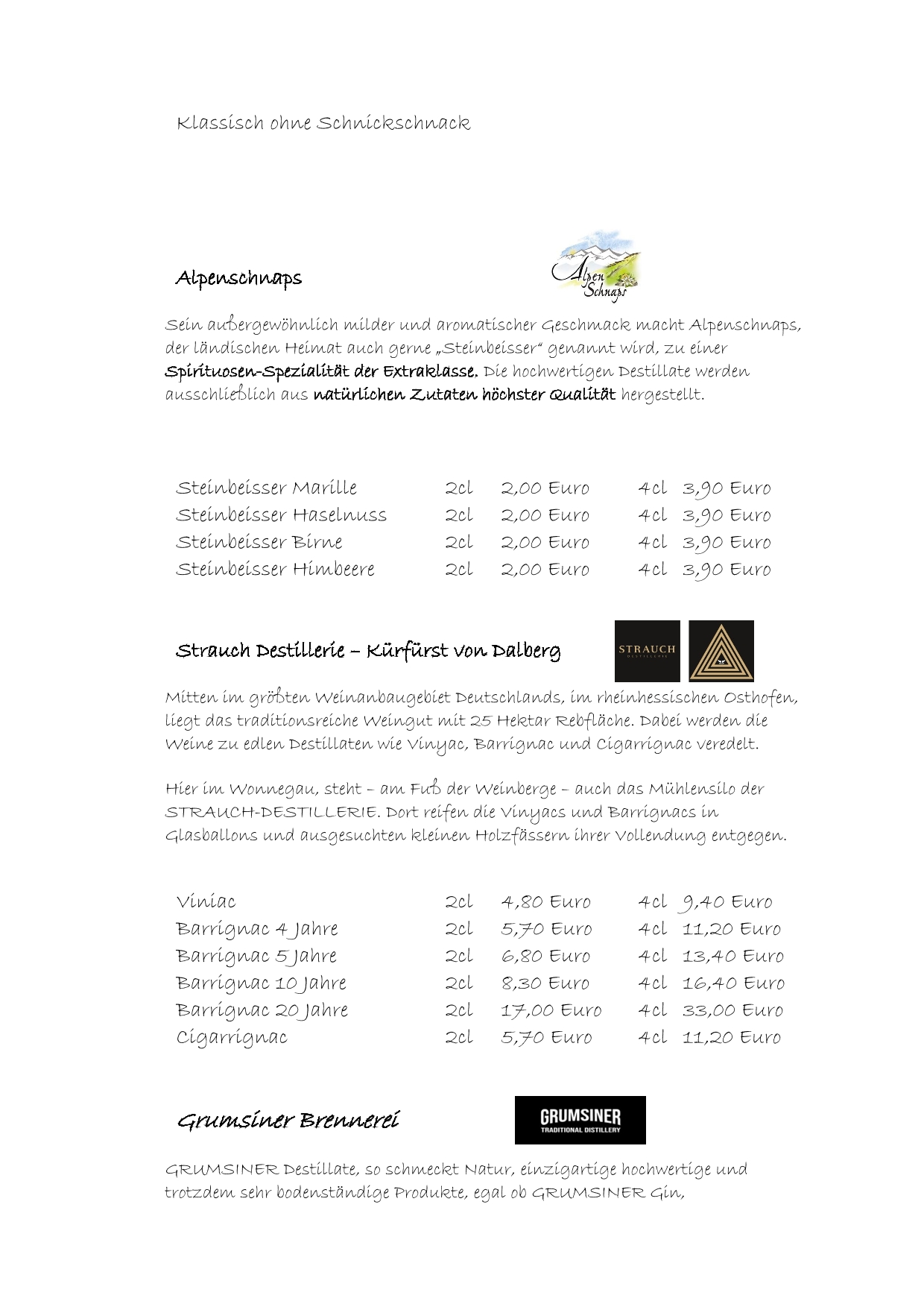 Wir sind ständig bemüht, unserer Angebot auf dieser Seite aktuell zu halten, möchten jedoch darauf aufmerksam machen, dass stets die aktuelle Karte mit ihrer Kalkulation im Restaurant Gültigkeit hat.