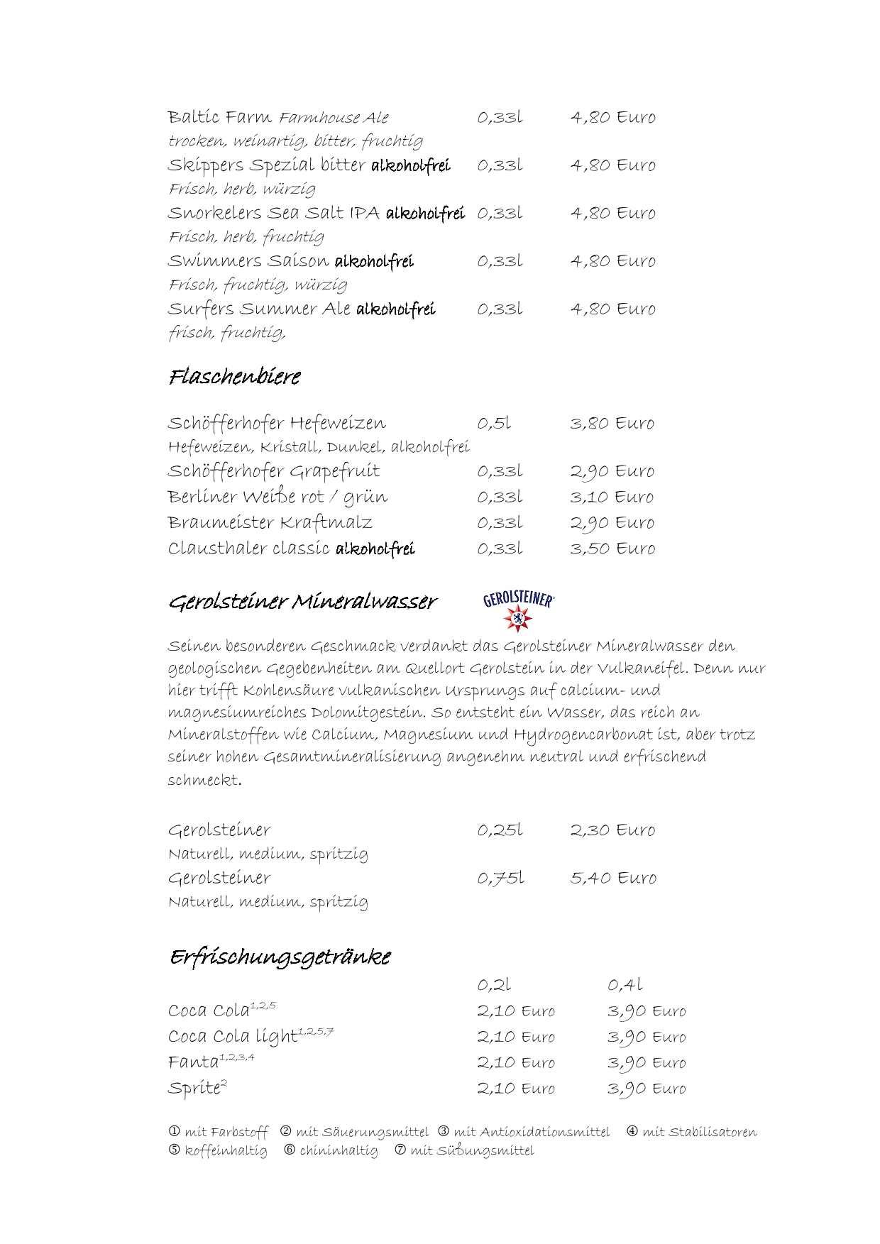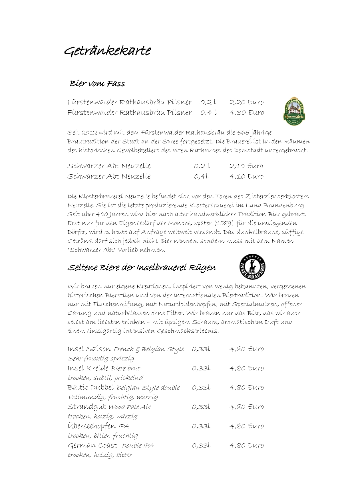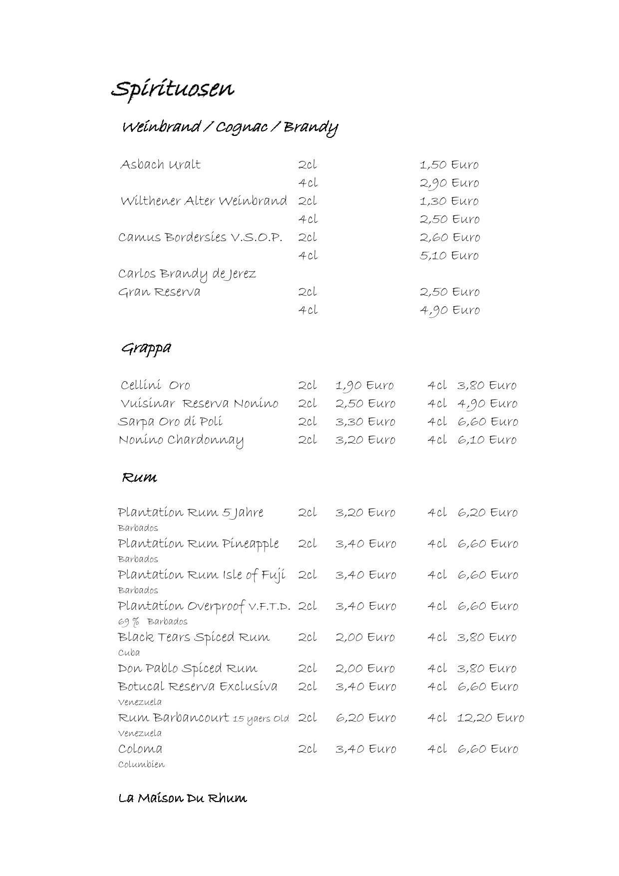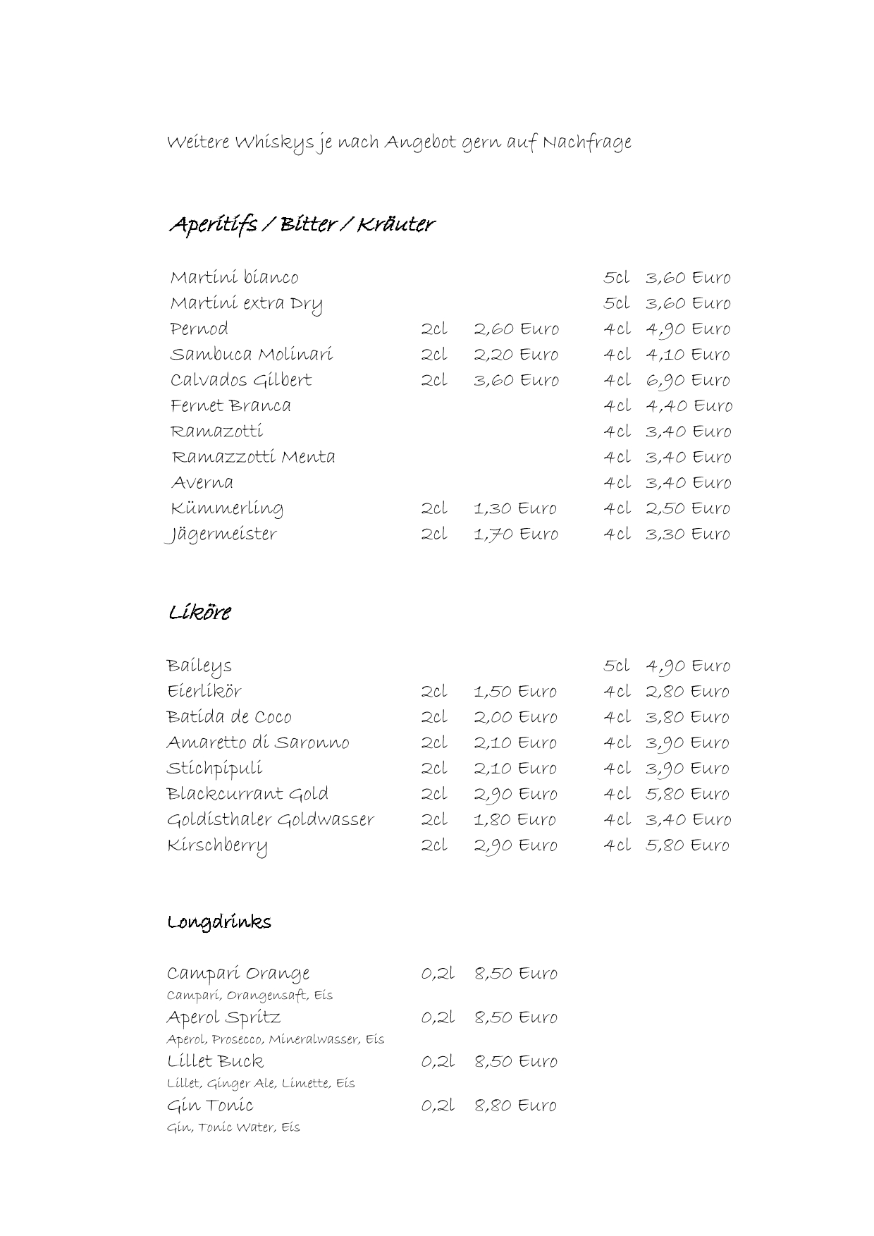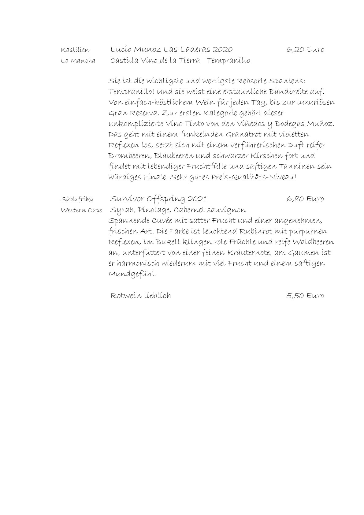 Wir sind ständig bemüht, unserer Angebot auf dieser Seite aktuell zu halten, möchten jedoch darauf aufmerksam machen, dass stets die aktuelle Karte mit ihrer Kalkulation im Restaurant Gültigkeit hat.